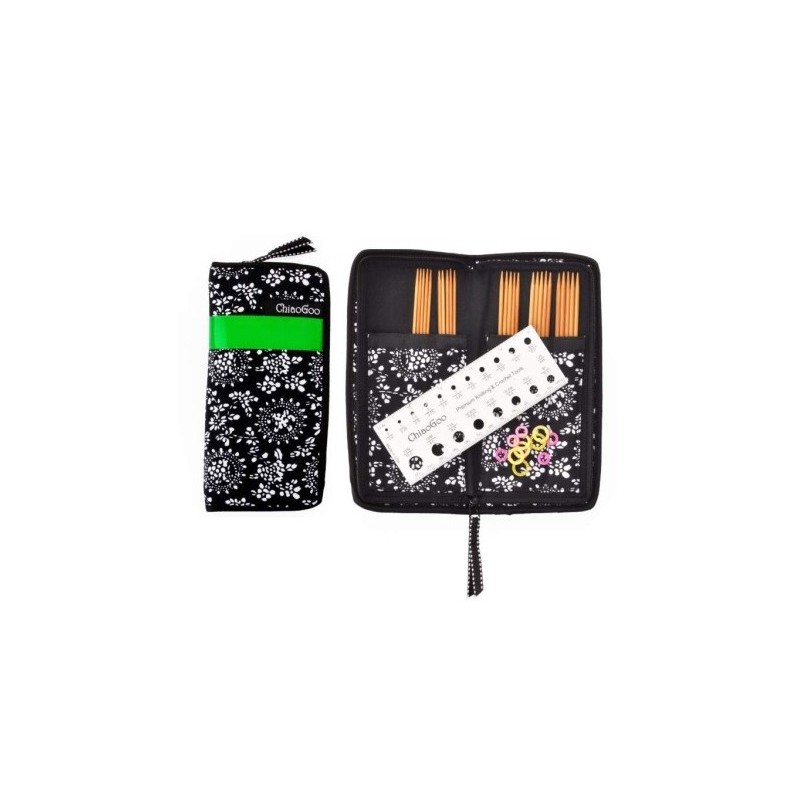- 6 setjes dubbele punten naalden (5x) van RVS met een lengte van 15 cm, in de maten 2.0 - 2.25 - 2.5 - 2.75 - 3.0 - 3.25 mm