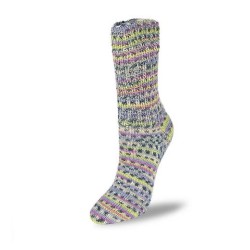 Superkwaliteit 4-draads sokkenwol, tovert zonneschijn tevoorschijn zodra je deze bol gaat verwerken in jouw nieuwste project. Stel je eens voor om met zo'n kleurige muts in de winter rond te lopen ....